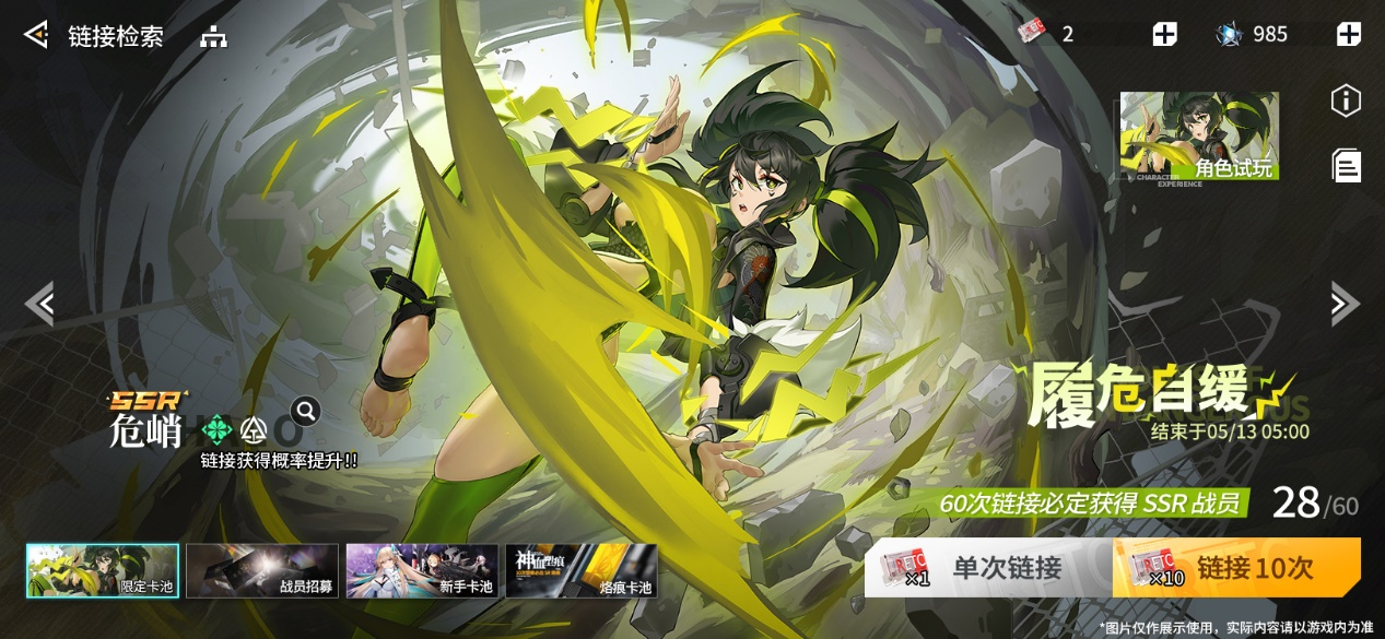 全新UP链接将于版本更新后开启,角色「危峭」链接概率提升!