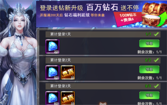 登录送100万钻石与贵族经验,大量福利等你来拿