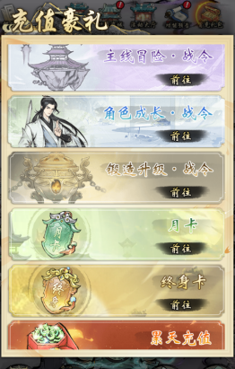 2.首充礼包、月卡、终身卡、战令性价比都很高,还有一些活动礼包等等,条件允许都可以进行拉满