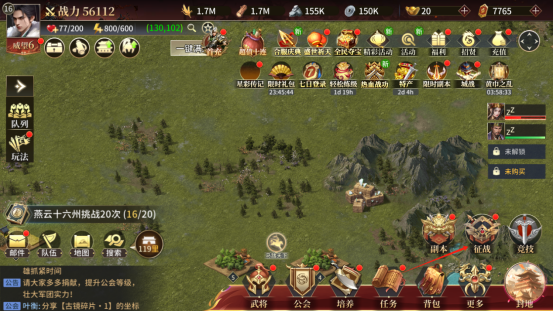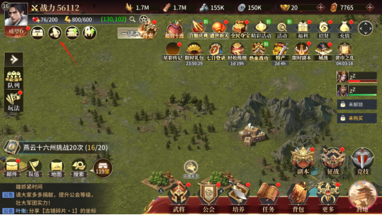 主界面右下角征战功能还有燕云十六州、马踏天下、丝绸之路、过关斩将可以获得丰厚奖励