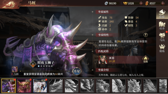 达到一定关卡可以开启相应的工会,马厩、征战等功能,可以提升玩家战力,玩家还可以在右上角箭头处查看手册功能可以看功能开启条件