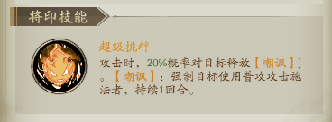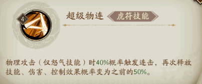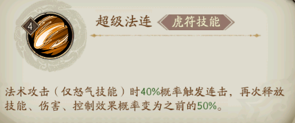这是虎符将印里的唯一一个控制技能,同样是攻击就能触发,当对面想放大招的时候 一个技能秒一个人的时候 结果发现被你控了,心态崩了。同样适合打的多 攻击次数多的 不是主C的AOE