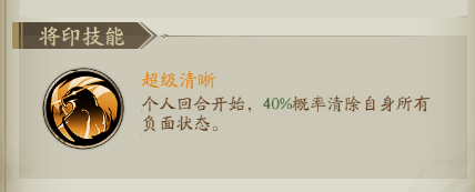 清晰将印是少数可以解控制的手段 除了像吕布关羽袁绍太史慈和张辽这种天生免控的,其他还是很怕被控制的 因为 一旦被控制 就意味着 晚一回合放技能 晚一回合放技能就意味着变数 同时也是一个比较尴尬的将印 因为他不是稳定清除 我花费一个将印格子不能稳定清楚负面状态 太看脸 而且 就算晚一回合放技能似乎也没啥 因为没有连续控制 不可能出现控到死的情况