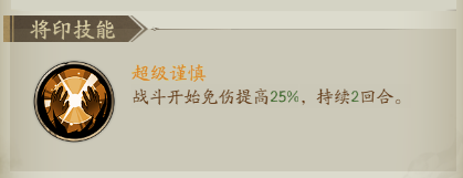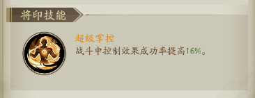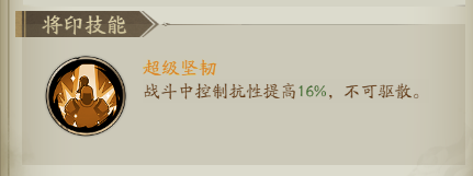 同样是比较鸡肋的将印16抗性 整体效果一般 相对于控制概率来讲 这16显得有些微不足道 不如直接带个玄武 控制格挡 还有20的抗控 仅适用于需要先手且不希望被控的武将