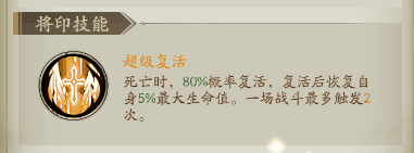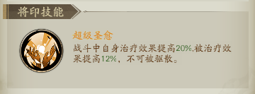 但是胜在是受伤就回 对面AOE很多或者多动症武将多的时候会显得比较好用 配合上愈合将印一回合 坦克和奶能回很多血