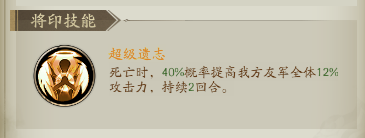 死了还不是100%给队友加攻击……最高级死5个人有几率触发2次……如果真的让我想一个能带这个符文的 怕只能是吕布,死了能复活 而且还不怕禁活,但是吕布都带输出去了,哪有格子带这个技能