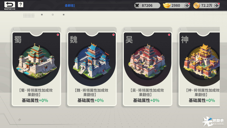 玩家可以上阵不同国家、不同职业的武将,来提升武将的属性,对应武将的属性翻倍。