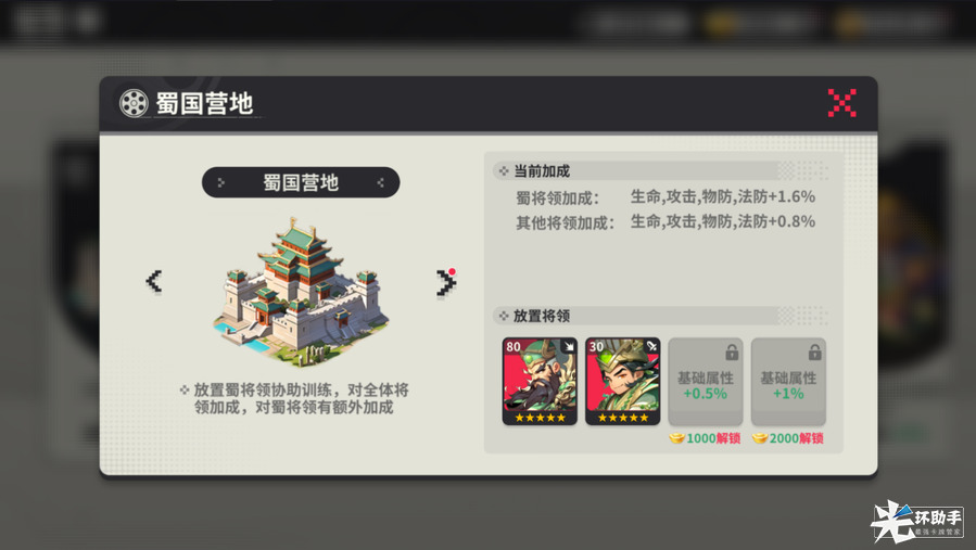 系统将玩家等级最高的6个武将放置将军府,同时玩家可以解锁偏将槽位。偏将槽位的武将等级与大将军的所有武将的最低等级相同,玩家只需要提升6个武将等级即可