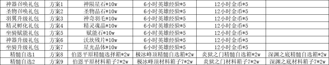 活动说明:活动期间玩家单日累计真实充值达指定金额,即可领取对应奖励方案中9选1作为充值奖励;充值金额为折后实付金额;金额可叠加,例如2000可以选择2个方案,2个方案可相同