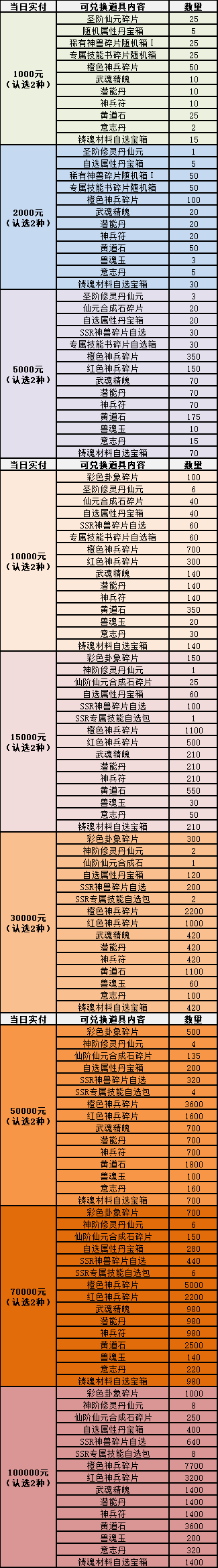 2、活动为单日累计,充值达标后即可与客服申请以下对应的充值挡位(实付)奖励,计算单日内累计的充值总额;