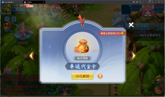 三、使用邮件赠送的代金券,在主界面左下方-【代金券特权】 直接购买20元幸运代金卡,解锁可变成888