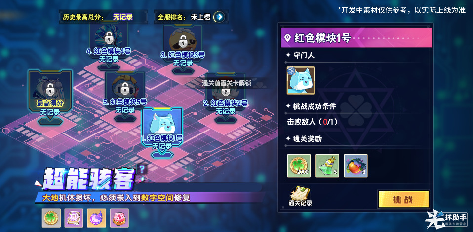 大地王在决斗中身负重伤,损坏的数据模块遭到病毒的入侵,需要借助小西普们的力量,将其嵌入数字空间中进行修复。小西普们每成功挑战一个模块,均可获得对应的奖励。同时挑战数据也将列入挑战排行榜,排行榜会在活动结束后进行结算,排行榜上的小西普可获得西普币、点券、灵源等奖励。