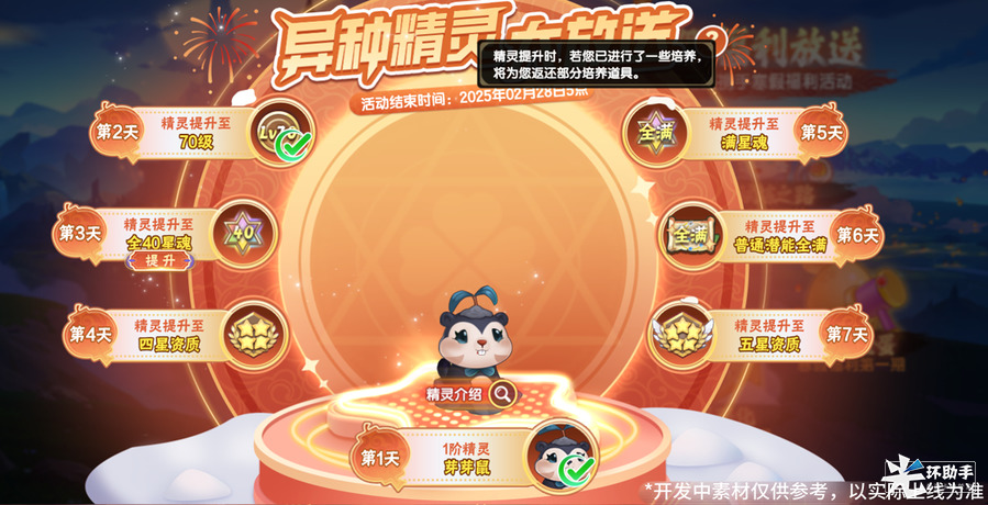 寒假福利第四期开启——异种精灵大放送!活动期间,小西普们可在50余种异种精灵中挑选自己喜爱的精灵进行强化,随着天数增加,可提升异种精灵的等级、星魂、潜能以及资质,帮助小西普们培养喜爱的异种精灵。