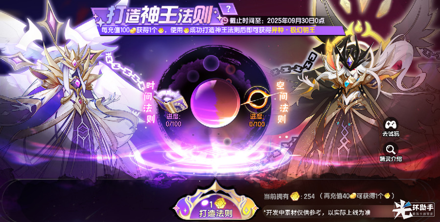 2025年1月10日5:00-9月30日5:00期间,已购买年费精灵·极幻明王的小西普可通过参与【打造神王法则】活动,使用活动道具打造神王法则获取异种·极幻明王。