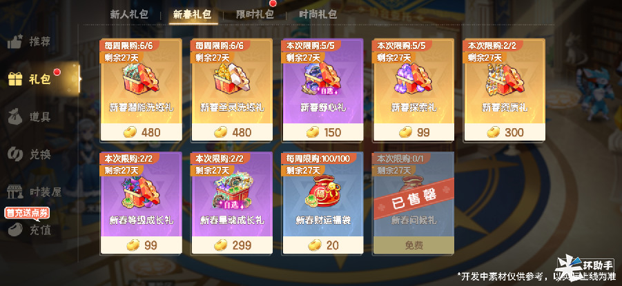 2、商城新春礼包限时上线,小西普们可根据需要选择自己所需的礼包。