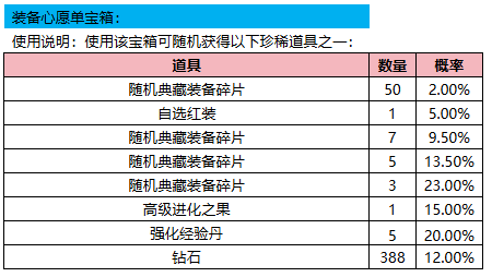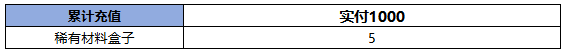 ——①活动期间内,实付累充至指定金额,即可兑换一组(5个)稀有材料盒子(下列盒子三选一),次周六重置