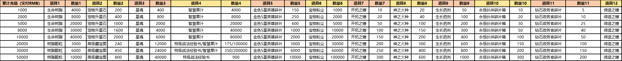 (2)奖励可叠加获得,如玩家周充值达到15000元,可获得1000档*1+2000档*1+5000档*1+8000档*1+10000档*1的奖励;
