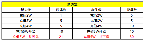 1)周累充达到2~3W之间,每累充多1W,可获得5个已有的头像;