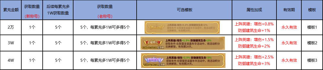 (4)称号发放规则:每个角色只能获取1个称号,需提供名单给专属客服安排发放~——因为使用多个称号可以重复叠加属性,故本期活动每个角色仅能获取1个称号,即三个模板选1个