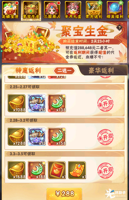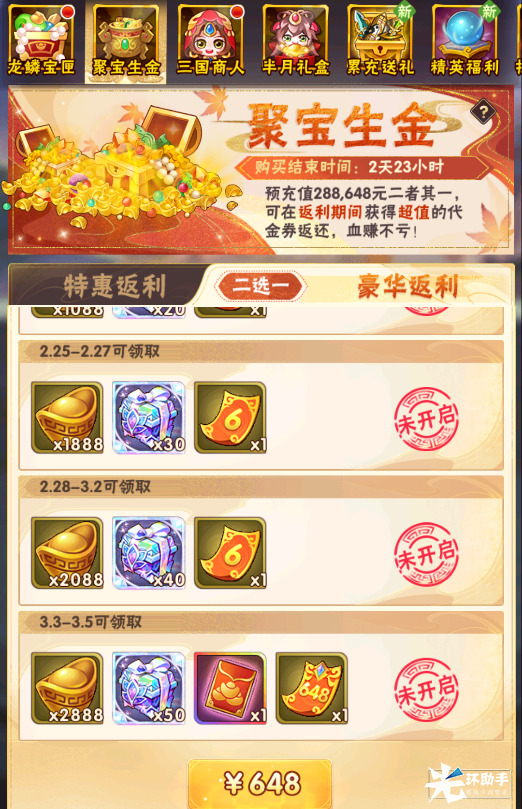 少年们单笔充值指定金额,即可立即获得海量元宝及稀有养成材料礼包「星韵镶玉养成包」,返利期还可获得288/648元限时代金券等豪华大礼!少年们千万不要错过哟~
