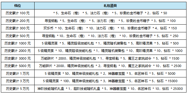 1、历史累充达到指定金额即可领取,支持高档位叠加低档位领取