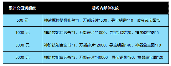 1、累计充值达到指定金额即可领,支持高档位叠加低档位领取
