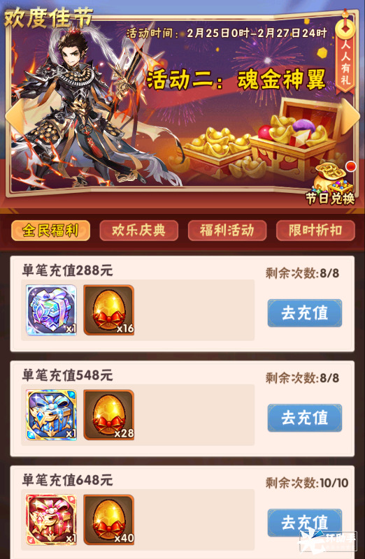 在活动期间少年们单笔充值至指定金额,即可获得魂金翅膀精华、昊金神兵碎片箱、幻金战宠碎片箱、元宝、春蛋等资源: