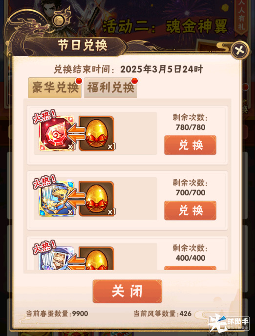 「春蛋」可用来兑换魂金翅膀精华、昊金神兵碎片箱等稀有资源: