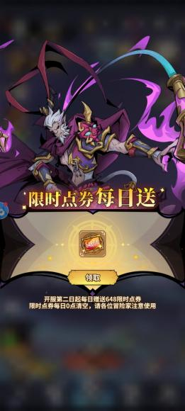 《最强猎手 (0.05折送满星机械神)》天天领648点券猫发布于 02-25免费版后缀说明-送每日648点券 【活动时间】:长期 【活动奖励】:648元点券 【领取方式】: 1)在游戏内-“战斗”页面-每日点券 【活动规则】: 1、人物角色达到10级,开服第2日起每日免费领取648点券!可购买游戏内除点券外的所有礼包和特权