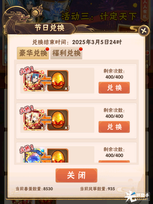 「春蛋」可用来兑换计定天下碎片箱、魂金美人二选一、神昊精华等稀有资源: