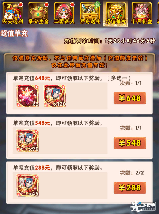 2.超值单充的充值额度计入“英雄回归”中累充活动的累计充值额度;