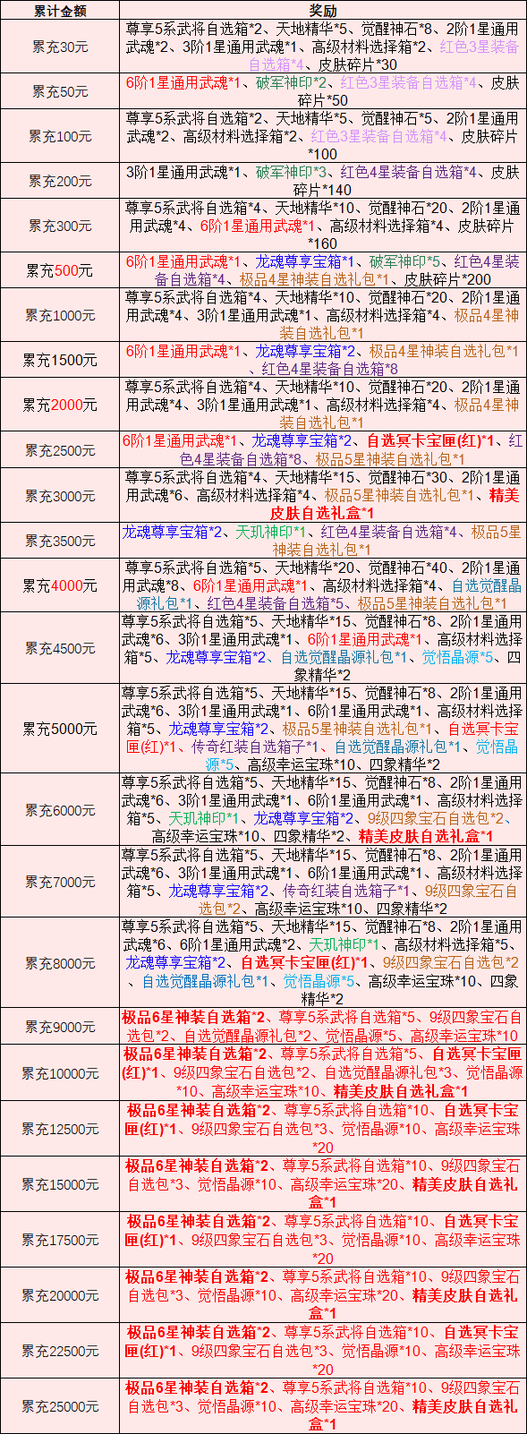 2、本活动仅计算真实支付充值金额,游戏内外代金券不计入在内