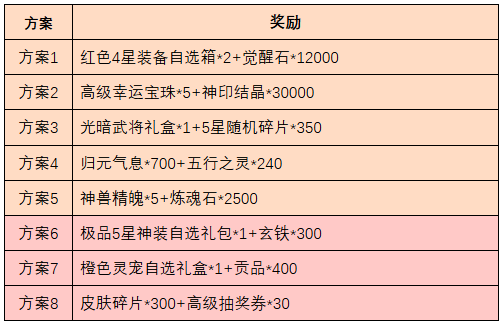 1、单日累充达到300(实付)后可以选择一个方案的奖励,多次达到累充目标可以重复领取,例如累充600则可以选择2次,活动期间申请上限为5次