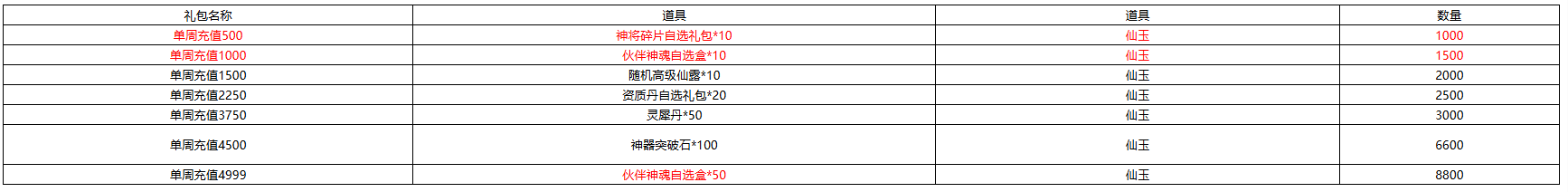 4、最高领取4轮奖励(列如:本周充值20000,单周可领取500档至4999档4次奖励;单周6000:选500档至4999档1次+500档+1000档)