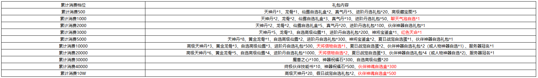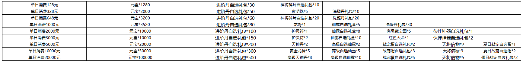 2、礼包可以累计领取,即充值20000可以领取以上所有礼包。