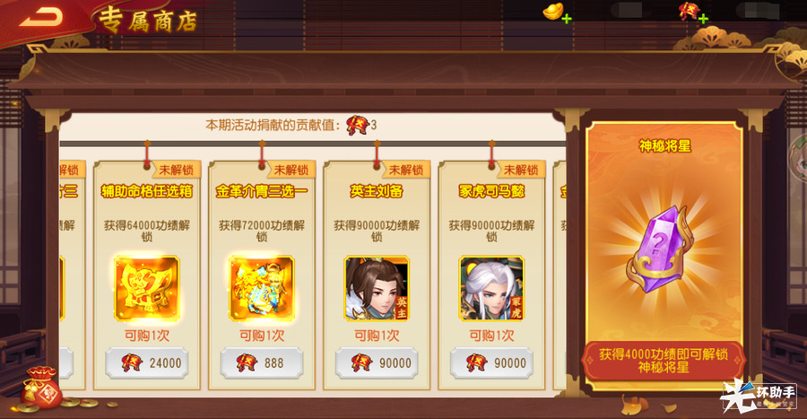在个人专属商店中,只要主公在本次活动中个人获得的功绩达到指定条件就能解锁稀有资源的兑换,九霄装备、金色宝物、限定武将英主刘备和冢虎司马懿,千万不要错过呀!