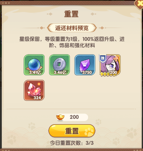 任意武将都可以重置,重置可以返还100%升级、进阶、饰品、和强化材料,但星级会保留,所以前期没主卡的情况下可以有什么用什么,但至少要核心输出,吕布不管前期后期,PVP还是PVE都非常好用,可以优先培养。