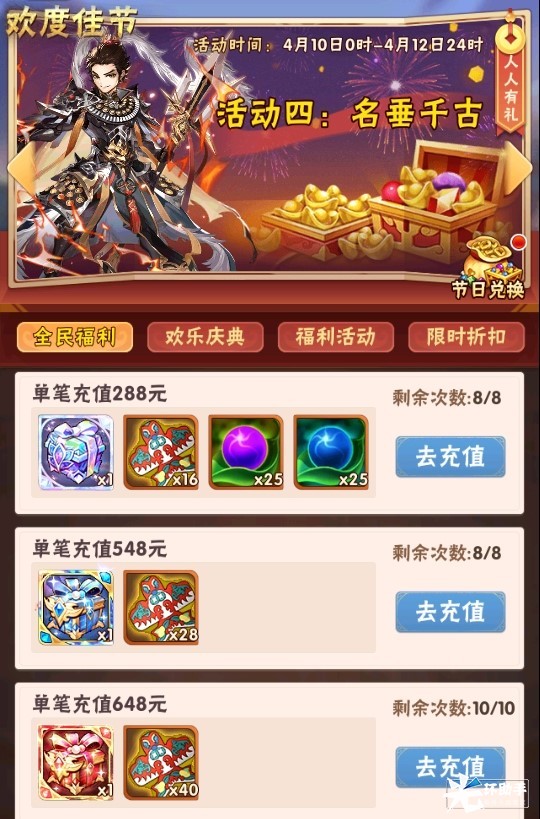 活动时间:4月10日0:00~4月13日0:00