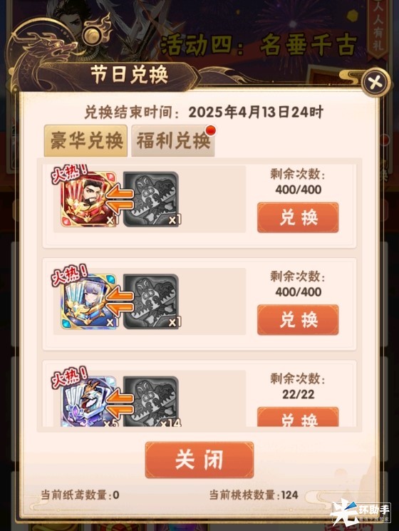 2.「纸鸢」、「桃枝」可以兑换各种高级稀有资源,详情请登录游戏查看。