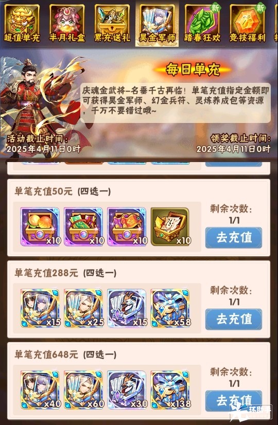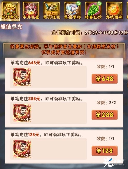 活动二、超值单充 魂金武将