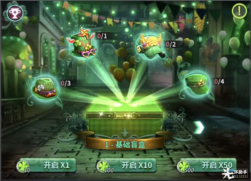 2.2.盲盒分为5种,每种里包含4种帽子,玩家可消耗对应的幸运币可以开启对应的盲盒