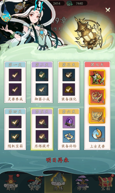 达到一定关卡可以开启相应的宝箱、御器、灵兽、灵宝、装备等功能,可以提升玩家战力