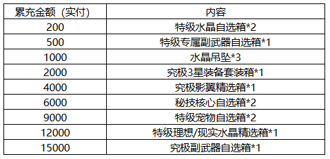 冠名礼包: UTR专属副武器自选箱*1,UR3星装备自选箱*1,精英SSR物化自选礼包*1,