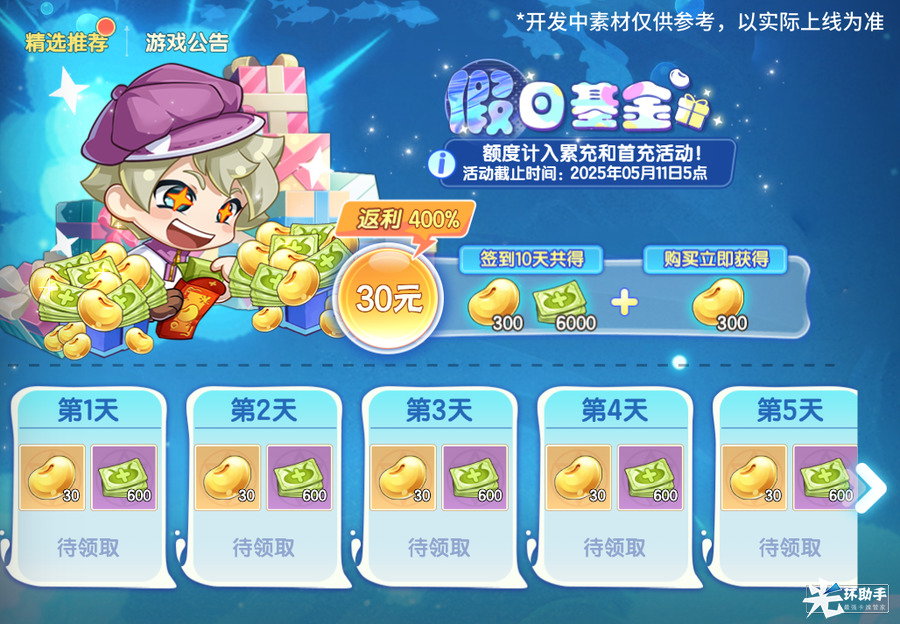 假日基金超值400%返利额度!激活假日基金,每日登录游戏都可以领取丰厚的西普豆和点卷。