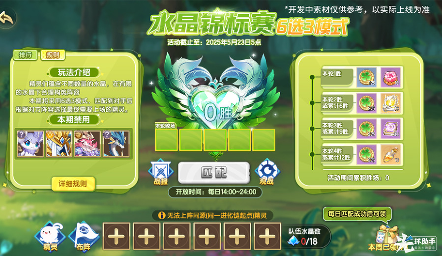 新一期水晶锦标赛上线,本期锦标赛采用6选3赛制,双方匹配成功后可根据对方的阵容挑选自己队伍中的3只精灵上阵对决。在有限的水晶之力下合理构筑阵容,成为决斗之王吧!