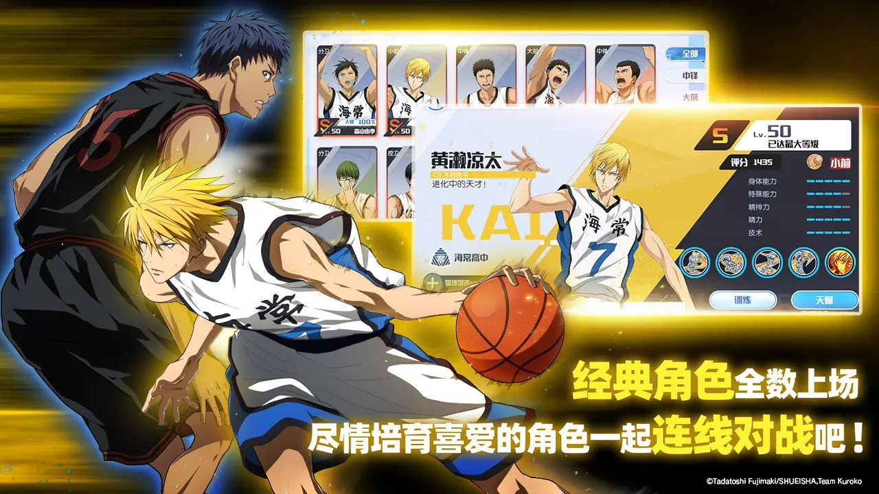 不只诚凛、海常高中,「黑子的篮球」中出现的各所篮球强校成员通通收录!尽情养成喜爱的球员加入竞技吧!