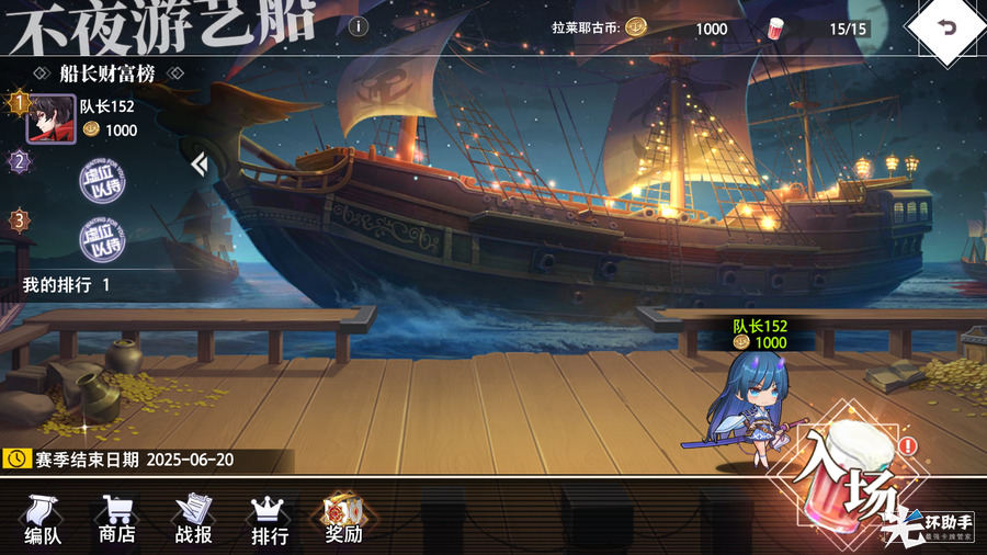 不夜游艺船赛季持续时间为3周,休赛期为1周,全天开放;进入游艺船挑战需要巴克斯特调,特调每180分钟恢复1杯,上限15杯;