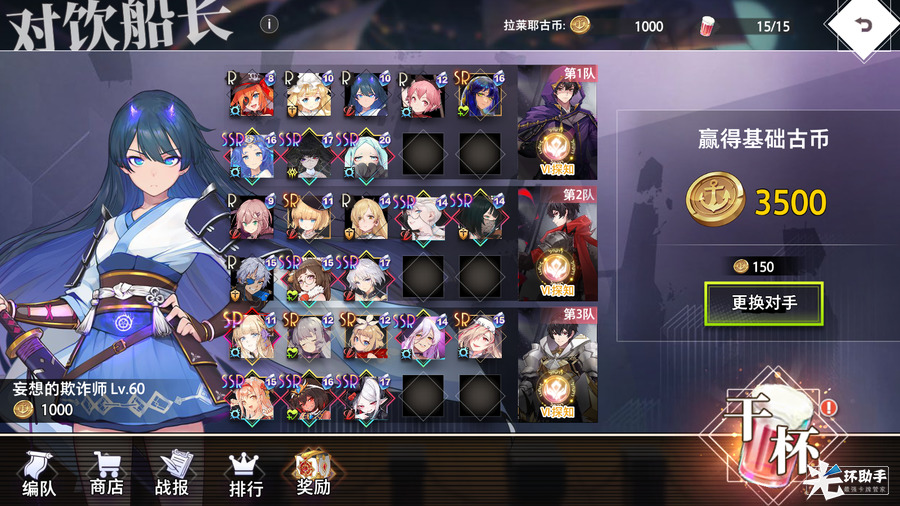 匹配到不同的船长可赢得的基础古币数量不同,如果对对手不满意,则可以消耗古币更换对手;