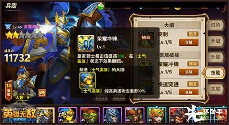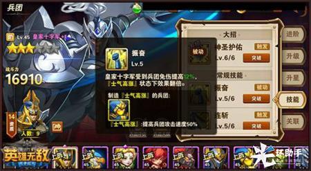 在士气高涨的配合下,皇家骑士的暴击值会出现一个暴击增益效果,并且在该状态的配合下增益会出现翻倍。对突进兵团来说,搭配上这样的技能效果,很大程度提升了他前排突进的能力,能够在前排对垒时快速打开突破口,加重对敌方后排的威胁。