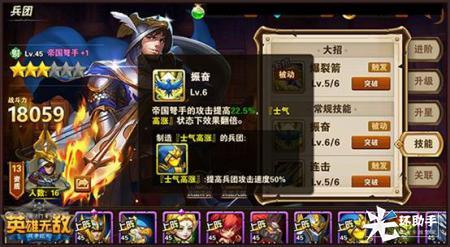 在这两个技能的搭配中,提升了帝国弩手的输出能力。帝国弩手自带的技能将他的攻击提升,加强了帝国弩手振奋这一技能的攻击伤害,而且在士气高涨的增幅之下,技能还出现了翻倍效果。